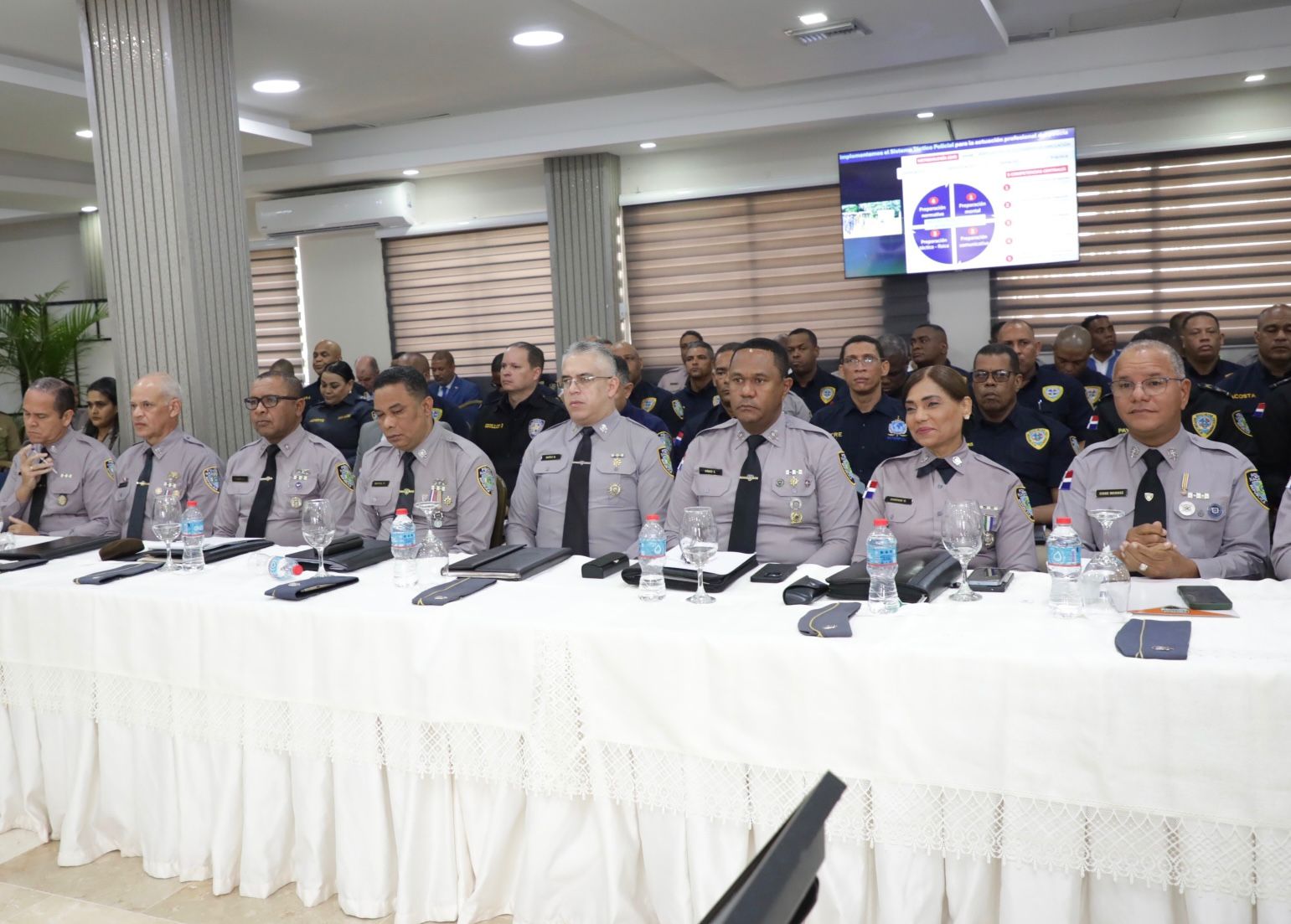 También, el presidente de la Dirección Nacional de Control de Drogas (DNCD), vicealmirante José Manuel Cabrera Ulloa; del Consejo Nacional de Drogas (CND), Alejandro de Jesús Abreu; el director de la Comisión Militar y Policial (Comipol), coronel Luis Rafael Herrera Almonte; de la Dirección General de Seguridad de Tránsito y Transporte Terrestre (Digesett), general Pascual Cruz Méndez; de la Policía de Turismo (Politur), general Minoru Matsunaga; del Sistema Nacional de Atención a Emergencias 911, coronel piloto Randolfo Rijo; de Asuntos Internos de la Policía Nacional, general Werner Núñez Quezada, y el asesor ejecutivo para Asuntos de Seguridad, John Huvane.
